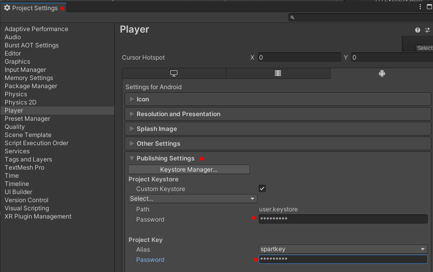 Project Keystore, Project Key의 패스워드를 모두 입력해주세요.