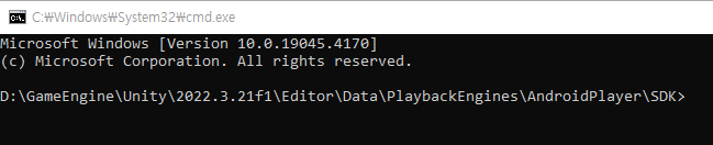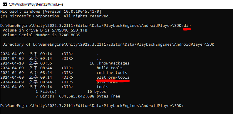 그럼 이렇게 바로 SDK 폴더가 있는 주소로 cmd창이 열리게 됩니다.