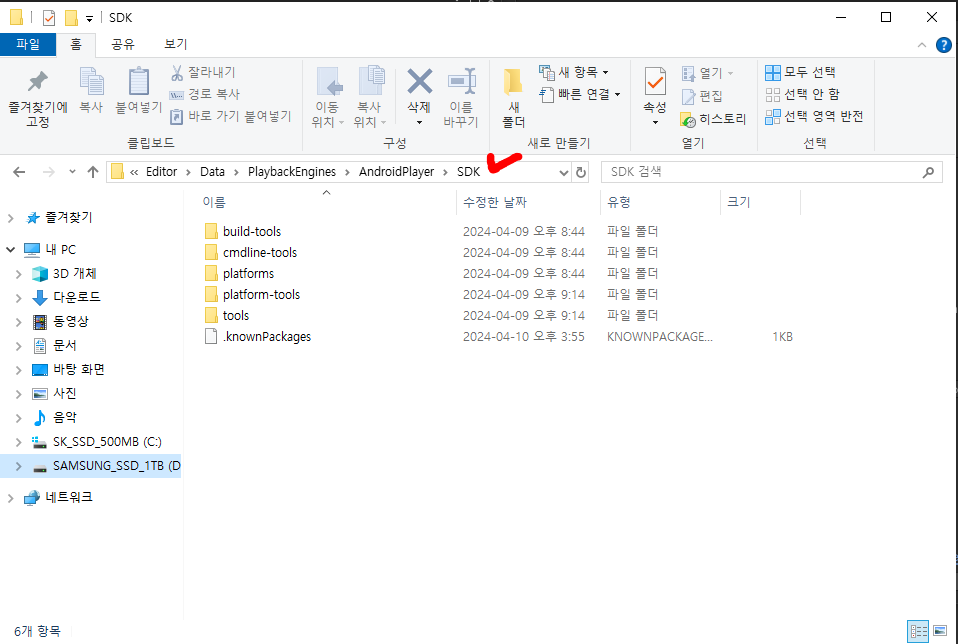 '내폴더' 열어서 아무 주소창에 아까 복사해둔 SDK 경로를 붙여넣어서 이동합니다.