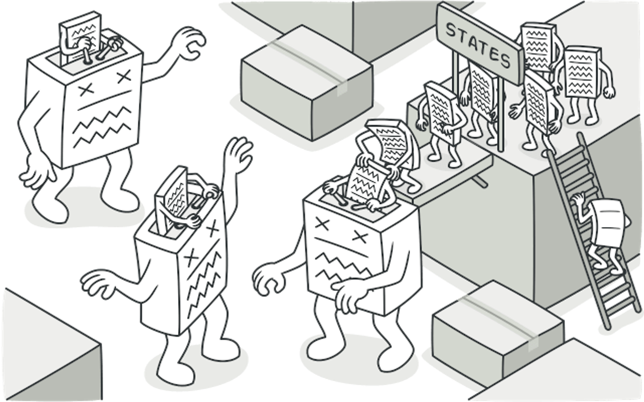 - 상태가 추가될 때마다 새로운 분기를 작성해야 되고, 중복된 코드가 많아진다.