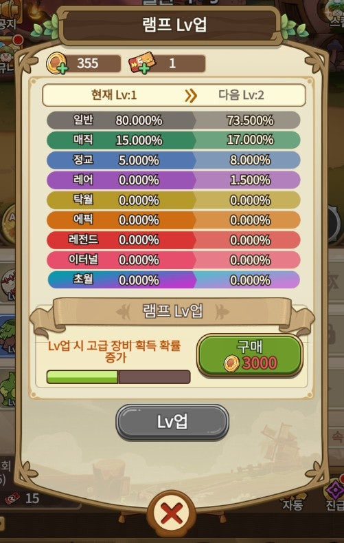 버섯커의 램프를 레벨업할 때 골드를 소모하는데, 레벨마다 소모값이 다르다.