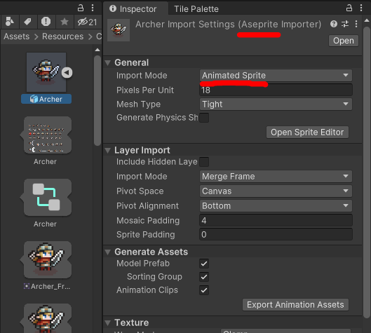 Failed to load 'D:/GameEngine/UnityProject/OneMonthTask/Assets/Resources/CharacterPack/Aseprite file/Archer.aseprite'. File may be corrupted or was serialized with a newer version of Unity.