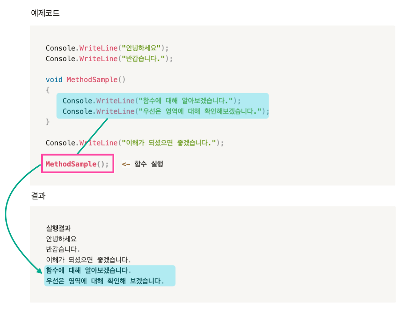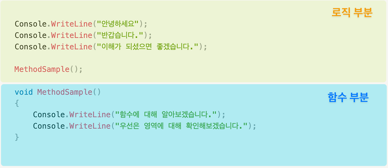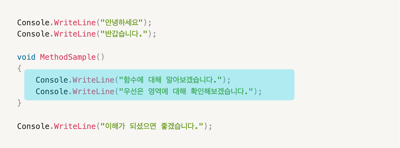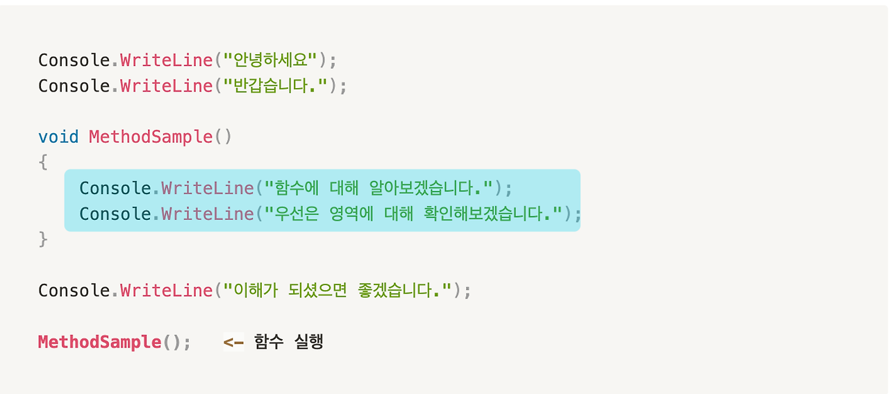 Console.WriteLine("함수에 대해 알아보겠습니다.");