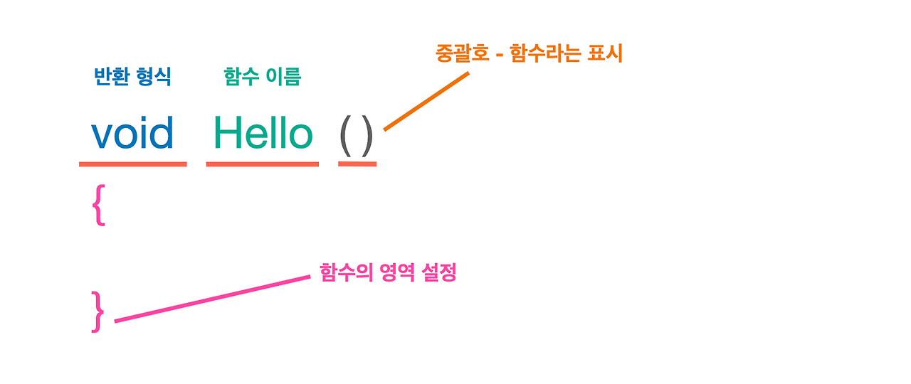 이 중 중괄호로 감싸인 부분이 함수의 영역에 해당합니다.