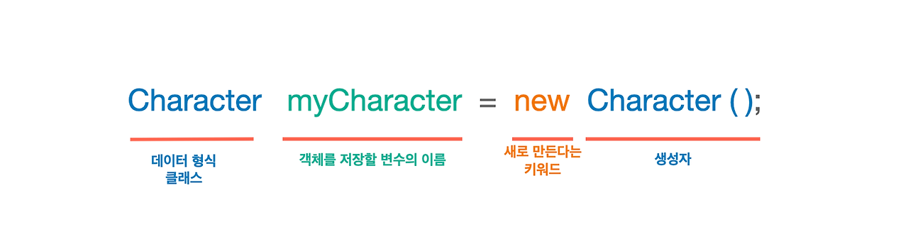 Character myCharacter = new Character(); <- 객체 생성