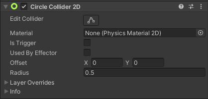 그래서 빗방울 오브젝트에 Circle Collider 컴포넌트를 추가합니다.
