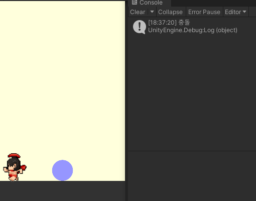 그럼 이제 Rain과 Ground가 충돌하면 콘솔창에 "충돌" 문자열이 나타나겠죠?