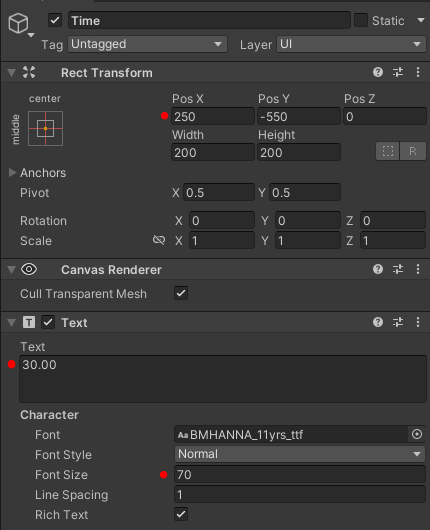 Ctrl + D 버튼으로 아까 만들었던 Text를 복사생성해주고, 위와 같이 이름을 변경했습니다.