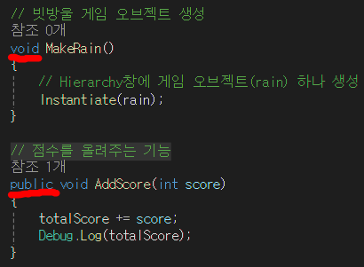 게임매니저 인스턴스로 불러올 수 있는 함수는 AddScore() 함수뿐입니다.