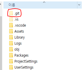그러면 이렇게 숨겨진 .git 폴더가 보이게 됩니다.