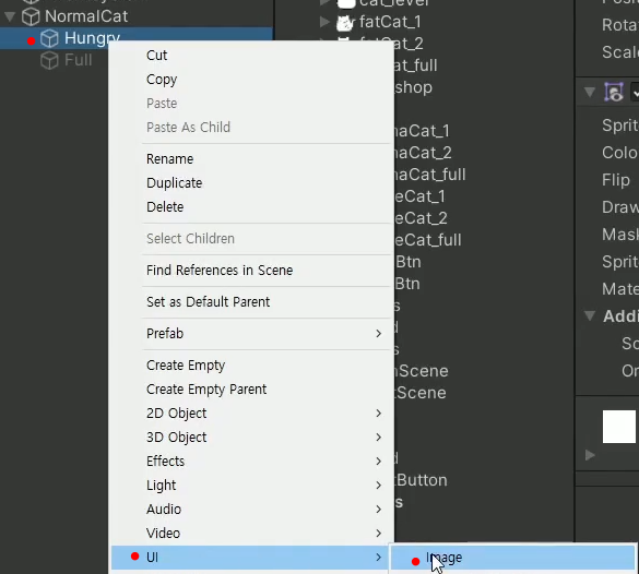 체력바 UI는 완성했고, 고양이가 Food에 맞으면 체력바가 올라가도록 코드를 작성해주어야 합니다.