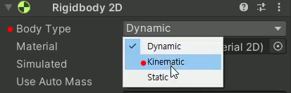- 주로 캐릭터나 플레이어와 같이 외부 요인에 의해 움직이지 않고, 코드로 제어해야 하는 객체에 사용됩니다.