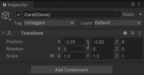 go.transform.position = new Vector2(x, y); // 카드 배치