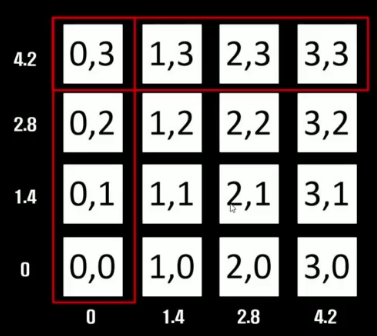 (0,0) 이런 숫자들이 있죠? 각 자리마다의 (X,Y)값을 나타낸 것입니다.