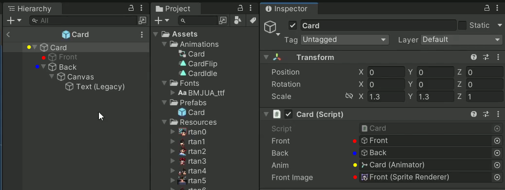 Card 프리팹을 넣어주시고, OpenCard 함수를 연결해주면 됩니다.
